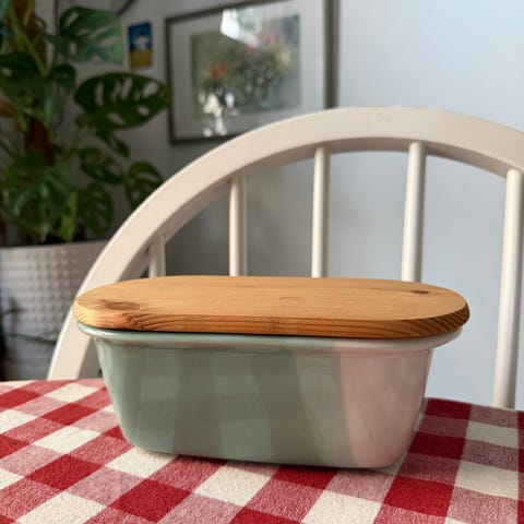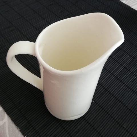 Kultakeramiikan Leia-kaadin, design Taru Tonder, korkeus 10/12 cm, 3,5 dl. Tuotetarra vielä tallella. Oikeanpuoleinen kaadin.