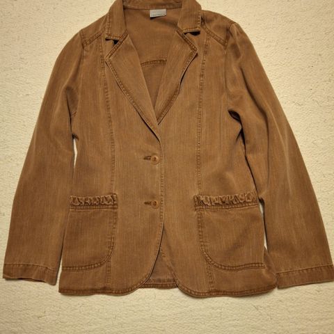 Uusi Finnkarelia lyocell ruskea hame koko 36. Vyötarössä molemmilla puolilla joustavat noin 10cm kuminauhat vyötärönauhan sisällä. Kuosi jäljittelee kulunutta farkkukangasta.