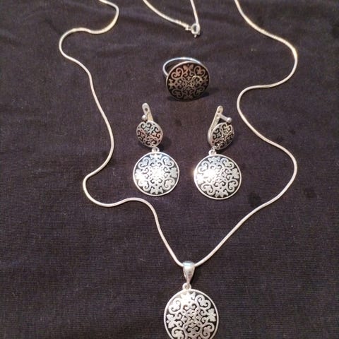Huippukuntoiset, siistit ja puhtaat. Settiin kuuluu kaulakoru ja korvakorut.