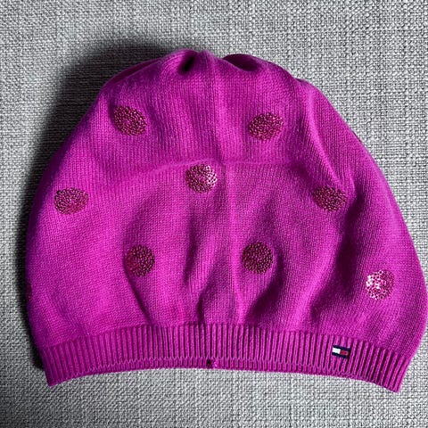 TH villapipo tupsulla, muutaman kerran pidetty paremman takin kanssa, kaunis tummansininen pipo noin 8-10 vuotiaalle.
