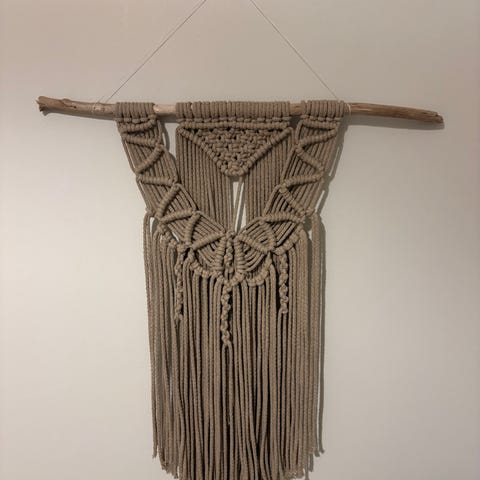 Myydään uudenveroinen käsityönä tehty kaunis makramee. Korkeus noin 57cm.