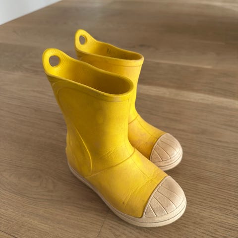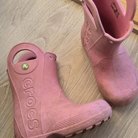 Auringonkeltaiset Crocsin kumpparit koossa 11, sisämitta noin 17,5cm.