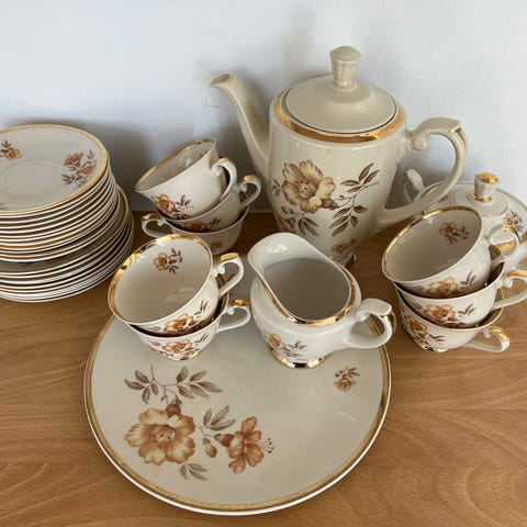 Täysin kunnossa, kaksi kahvipannua, kaikki astiastoon kuuluva muut