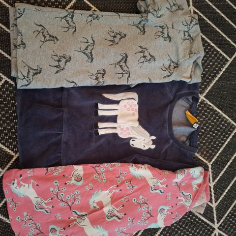 Kaksi paitaa koossa 98, mutta meillä ei päälle mahtunut, joten jäi käyttämättömiksi, pieni koko siis. Ponipaidassa kivat röyhelöt hihoissa.