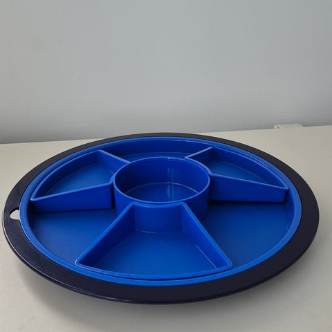 Kuva 2. Sambakulhot /-lautaset. Kuusi kulhoa kansineen. Halkaisija 21.5 cm. Tilavuus 700ml. Tosi tiiviit kannet. Joissain näkyy käytönjälkiä, osa uudenveroisia. Hp. 18e.