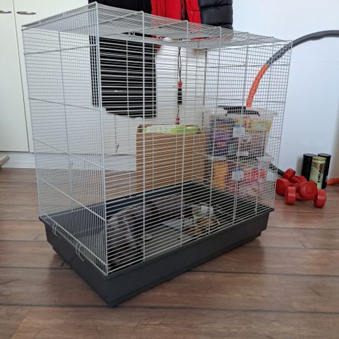 Myydään Ferplast hamsterin häkki. Pohjassa käytönjälkeä kulmissa ja tasanteesta puuttuu kaksi ”ruuvia” (pysyy kiinni kahdellakin). Muuten ehjä ja hyväkuntoinen häkki. Mukaan saa kuvassa näkyvät häkkitarvikkeet.