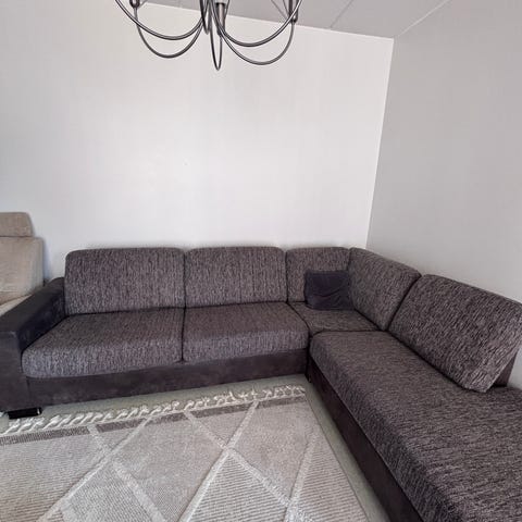 Iso ja mukava kulmasohva etsii uutta kotia.
