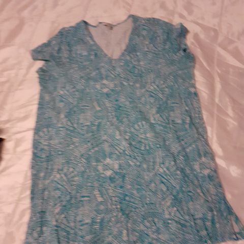 Ihana kesätunika turkoosi jossa erilaisia kuvioita.Napit edessä. 3/4osaiset hihat missä myös saa napilla nostettua ylemmäksi. Kuin uusi.