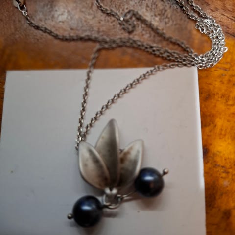 Uusi, käyttämätön hopeinen Mustikka riipus.