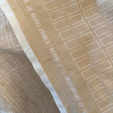 Marimekko Pilotti Maija Isola- Kristiina Leppo.Liina Marimekko Oy 1983 on tahraton ja erittäin hyväkuntoinen liina. Pituus 164 cm, leveys 146 cm.