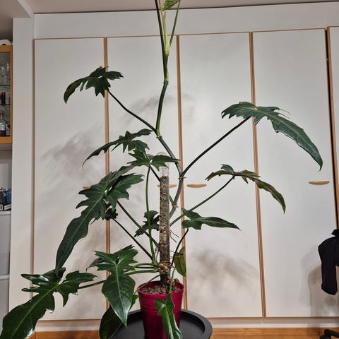 Myydään koko Philodendron jungle fewer variegata emotaimi. Ensimmäisessä kuvassa sama kasvi syksyllä. Nyt jäänyt muiden varjoon tilan puutteen johdosta.