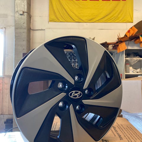 Edelleen omassa paketissaan oleva uusi 15" vararenkaan vanne. Hankittu alunperin Hyundai Ioniq -malliin.