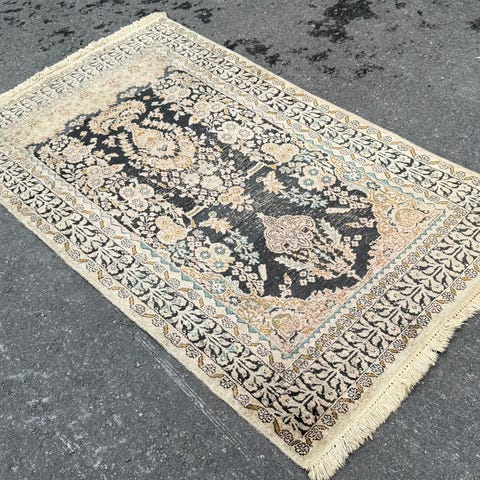 Käsinsolmittu Kashmir vintage silkkimatto.