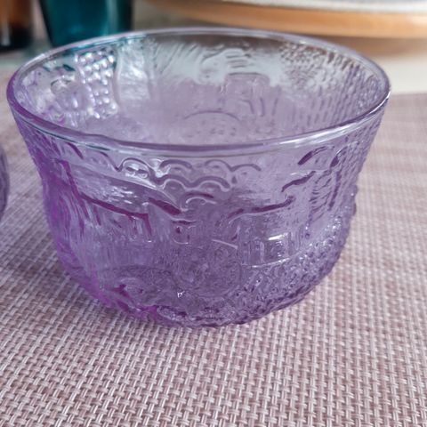 Vaaleansininen vanha Fauna kulho. Noin 18,7cmx19cm. Muutoin ehjä ja hyväkuntoinen, mutta reunasta löysin jälkiä, joista kuvat. Yksi mielestäni vain valuvirhe/piste lasin sisällä. Yksi pieni pala puuttuu reunasta ja isoin jälki näyttää olevan ilmatasku lasin sisällä, jonka kohdalla naarmu/viilto reunassa. Kaunis kulho näistä huolimatta.