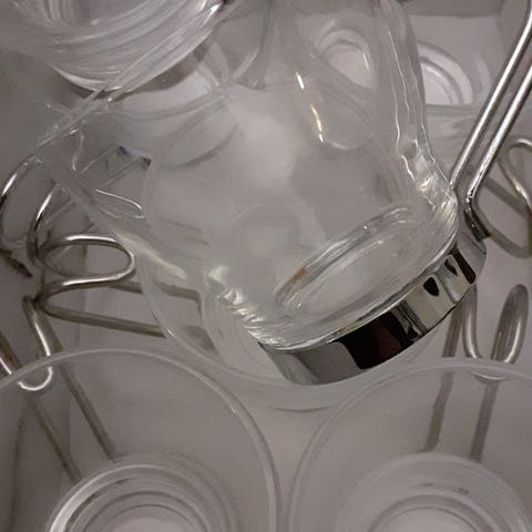 Kuusi kpl lähes käyttämätöntä kuppia.Korkeus n.6,5 cm.Myydään koko setti yhdessä.Voin postittaa.