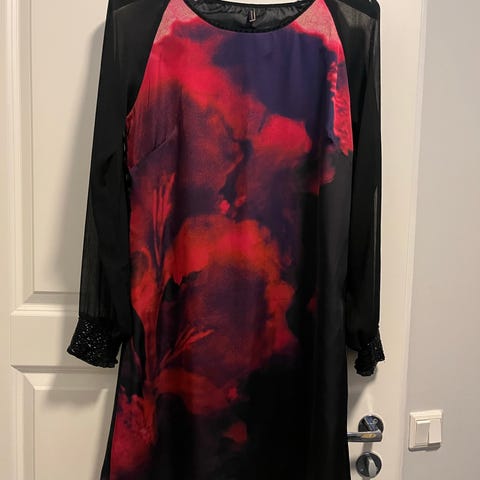 Lyhyet hihat, takana vetoketju, hyvin istuva, kaunislinjainen mekko