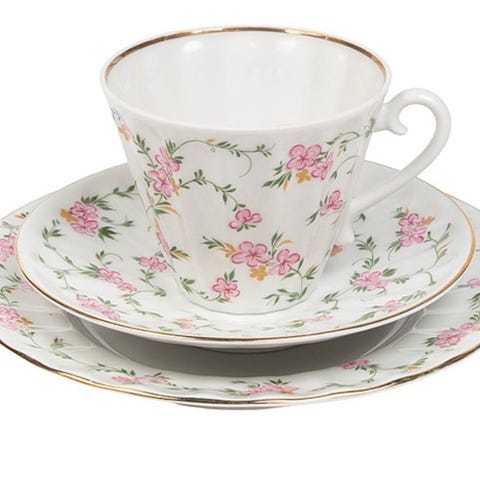 Kahvikannu, sokerikko, kermavkko, 6 kahvikolmiota, kynttilänjalka, karkkimaljakko. Kaikki priima kunnossa.