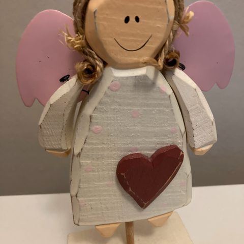 Koriste-enkeli, jonka saa narusta roikkumaan. Keramiikkaa. Ehjä ja siisti. 90-luvulta.