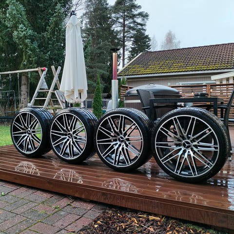 Suorat Mercedes C-sarjan vanteet + painetunnistimet 2kpl 9,5jx19 ET45 -2kpl 8,5jx19 ET42