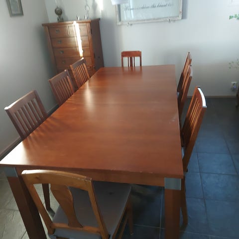 Kevyt siirrellä, siro ja hyvä istua. Omasta mielestäni kauniskin.. kun käyttää pöytäliinaa.