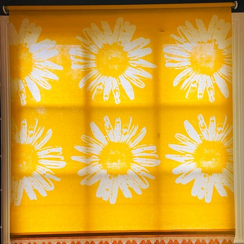 Retro 1970-luvun rullaverho, siisti, tukeva, n.200x200cm (Voin mitata tarkemmin), merkki URA. Haettava