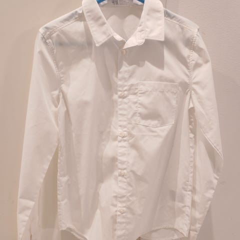 Erittäin hyväkuntoinen valkoinen kauluspaita kesän juhliin. Lyhyet hihat. Koko 152.