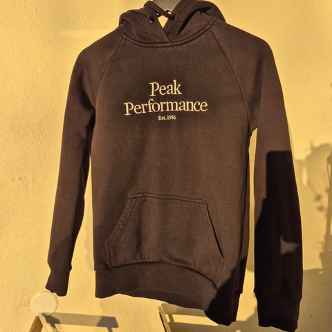Musta huppari, urheilukangasta. Kokomerkintä S, mutta brändille tyypillisesti niukkaa mitoitusta. Viimeisen kuvan täplä kamerasta. Ehjä ja tosi siisti.