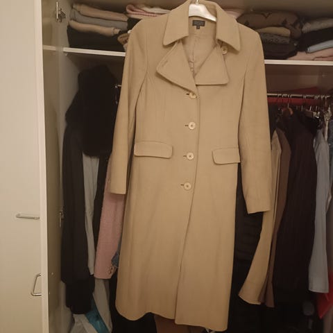 Myydään valkoinen villakangastakki kokoa 36. Pinta hieman nukkaantunut mutta muuten hyvässä kunnossa
