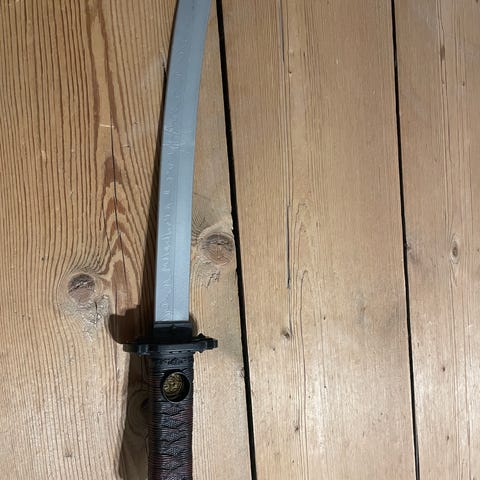 Yhteishintaan siis nuo 4 osaa , eli pehmomiekka ( pituus noin 25 cm ja tässä on taistelun jälkiä ja taipumaa) sekä 2 heittotähteä ja " nyrkkirauta "
