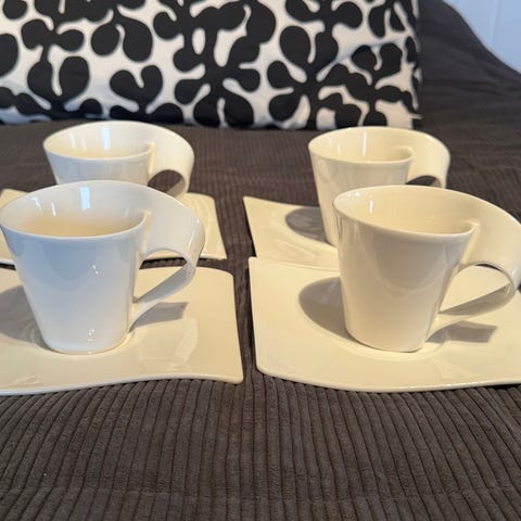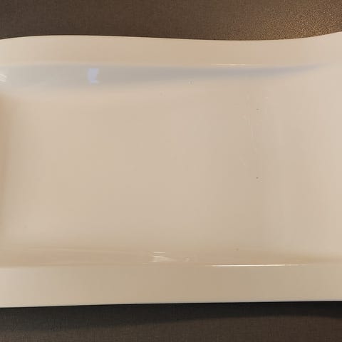 2 kpl Villeroy&Bohin Geo-sarjan pieniä käyttämättömiä (korkeus 21 cm, leveys 13 cm) kattauslautasia, esim. salaatille. Hinta yht. 10 euroa.