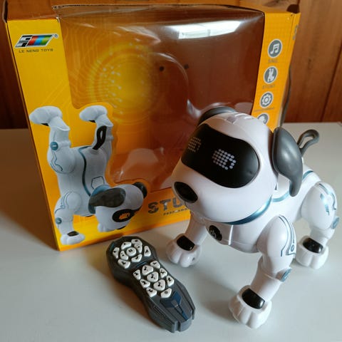 Lelu robotti, toimii kahdella AAA paristolla. Rinnan "valokolmio" kulunut pinnasta. Silmissä voimakasta kulumista. Kävelee erittäin hitaasti jos etenee laisinkaan. Kivan näköinen lelu hyllyllä koristeena.