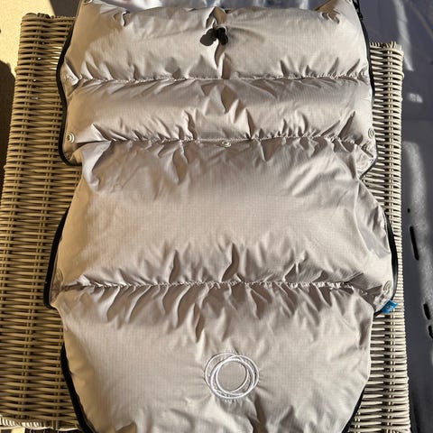 Myydään hyväkuntoinen Bugaboon High Performance footmuff. Väri vaalea beige. Pesty viimeisen käytön jälkeen pesuohjeiden mukaisesti. Pesun jälkeen jäi hentoja "viiruja", näkyy kuvassa.