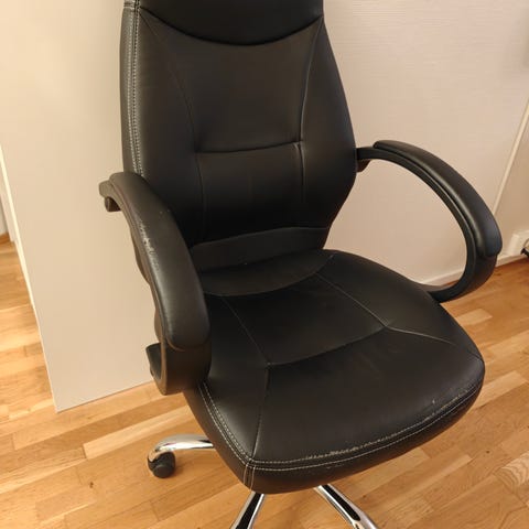 Hyväkuntoinen säädettävä, pyörillä oleva, siro ja kaunis toimistotuoli.
