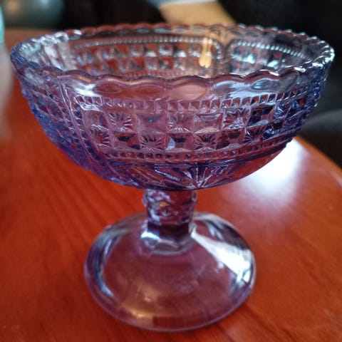 Riihimäenlasin sokerikko, korkeus 7 cm, halkaisija 12,5 cm, paino 485 g.