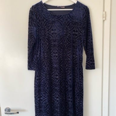 Mitat: Olkapään leveys 50cm, olkapää- helma pituus 126cm, kainalosta- kainaloon 56cm, vyötärön leveys 2 x 54cm ja hihan pituus 33cm.