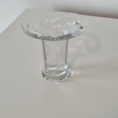 Myydään Kerttu Nurmisen Nuutajärven lasille suunnittelema Lumme-sarjan maljakko. Reunassa yksittäinen pieni lohkeama, kts. viimeinen kuva. Muutoin erinomainen kunto.