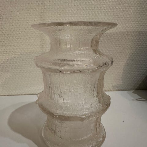 Myydään signeerattu Timo Sarpanevan suunnittelema Finlandia-maljakko (3351), väri harmaanvihreä. Ulkoreunassa reunaliepeen alapuolella varsin huomaamattomat lohkeamat (kuvissa).