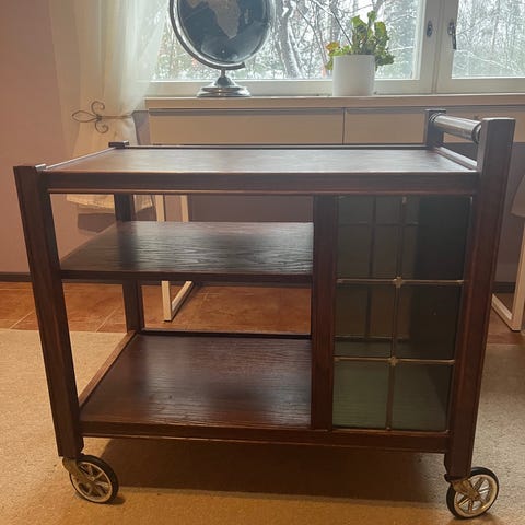 Siisti kuntoinen baarikaappi / tarjoilupöytä pyörillä.