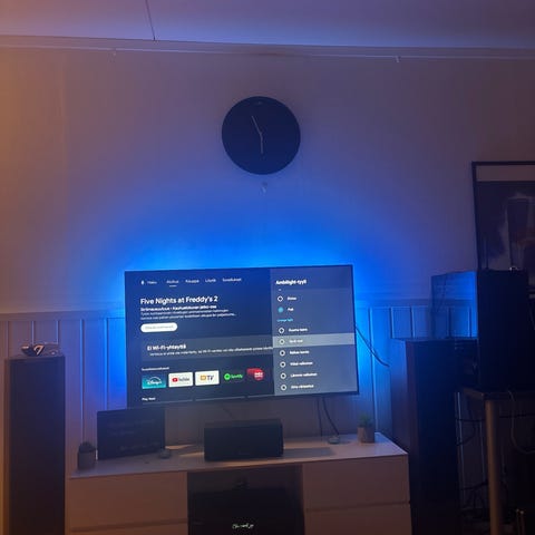 Televisio on ostettu uutena, valmistettu 2015. Se on energialuokaltaan A+ ja kuluttaa virtaa vain 115 W (maks. 264 W).