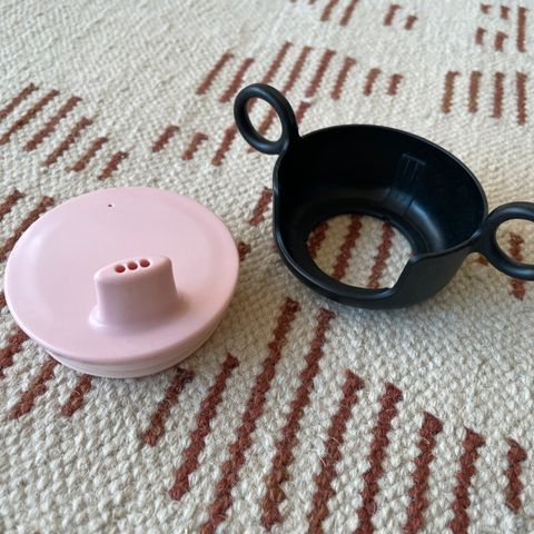 Setti ostettu uutena 2025, ei ole käytettä koskaan. Pesty kertaalleen hellävaraisella pesuaineella ja säilytetty keittiön kaapissa. Kuppi on Arne Jacobsenilta, tehty ecozenistä (BPA-vapaa), kannet ovat muovia (myös BPA-vapaita). Kuppi on noin 7.5 cm korkea.