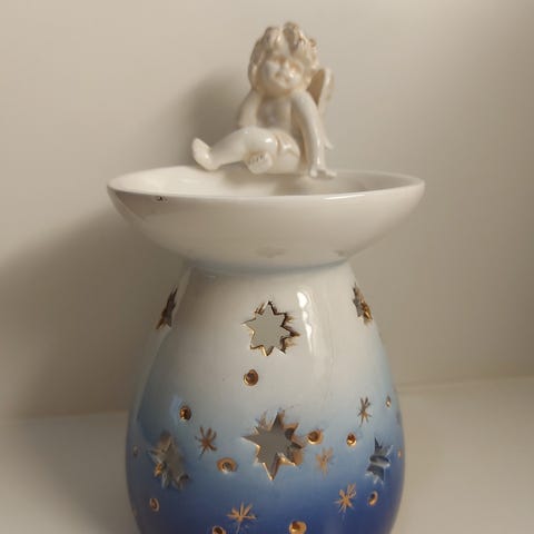Kaunis Sian enkelilyhty. Posliinia. Halkaisija noin 15 cm ja korkeus 17 cm.