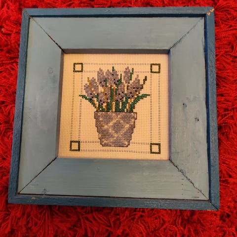 Myydään kehystetty ristipistotyö. Kork.n. 31, lev.n. 56.