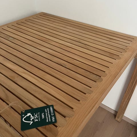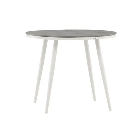 Tässä Vig-terassipöydässä teräspinta on yhdistetty tyylikkääseen Robinia-puuhun, joka antaa kaunista, luonnonläheistä kontrastia metalliselle rungolle.