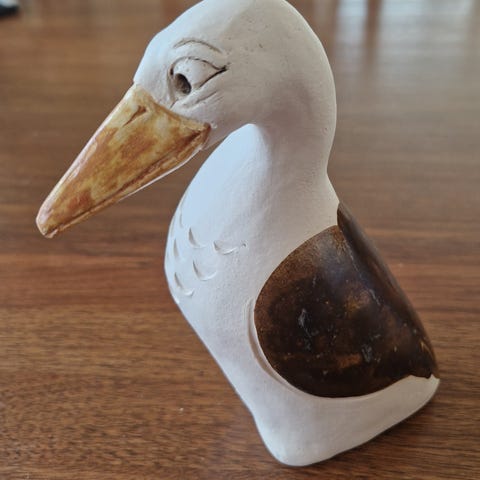 Myydään lintufiguuri. Valmistaja on Kaisla Keramiikka Tuusula,