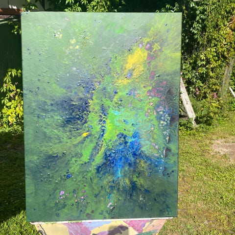 Kurvin kevät- niminen ja aiheinen pastelliteos Timo Jakolalta. Koko kehyksineen 38x29cm.