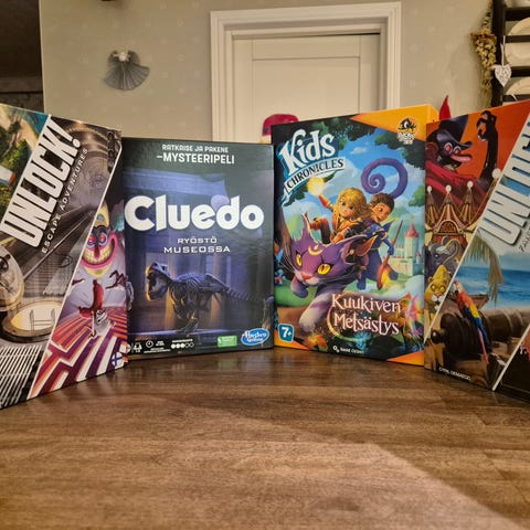 Myydään kuvanmukainen setti Trapped-pakopelejä. Pelien vaikeustaso vaihtelee, joten pelaamaan pääsevät myös perheen pienimmät. Kaikki pelit on pelattu ja pakattu siististi takaisin. Osat, jotka ovat vaatineet leikkaamista tai taittamista on tehty siististi. Leikkaamiset/taittamiset eivät pilaa pelin ideaa. Merkintöjä ei ole tehty mihinkään (sen sijaan on otettu kopioita). Kaikki osat ovat tallella lukuun ottamatta yhtä ns. osallistumiskorttia (tallella 5/6 kpl), joka enemmän rekvisiittaa. Ko. kortin voi halutessaan kopioida toisesta kortista. Myydään settinä. Nouto tai toimitus 8 euroa.