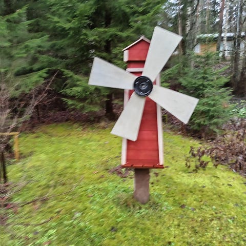 Ylin mökkiosa kääntyy. Siipiosan laakerointi akselin molempiin päihin, joten siivet pyörii herkästi. Kestää kovatkin myrskyt. Testattu omalla tuulimyllyllä, omalla pihalla usean vuoden ajan.