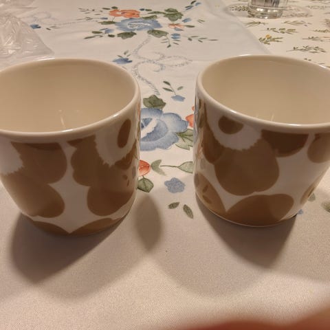 Myydään käyttämättömät, uutta vastaavat Marimekon Unikko korvattomat kupit ja lautaset 13,5cm.