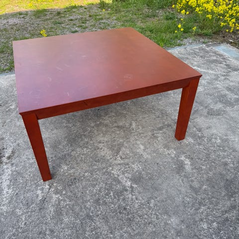 Lasikansi, ja koivuinen alataso vaihdettavissa keskenään. Runko täyskoivua. Kaustepyörillä. 60 x 60 cm ja korkeus pyörineen 50 cm.