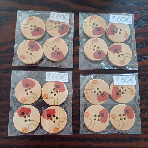 Nappeja. Puunappeja. Vaaleanpunavalkoisia isoja kukkanappeja valkoisella pohjalla. 0,40€/nappi. Myynnissä 3pss. 1,20€/1pss. 2,40€/2pss. 3,60€/3pss. Haku tai postitus kirjeenä 2,70€ 50g asti tai 5,20€ 250g asti kirjekuoren kanssa tai helposti kuorella 3,45€